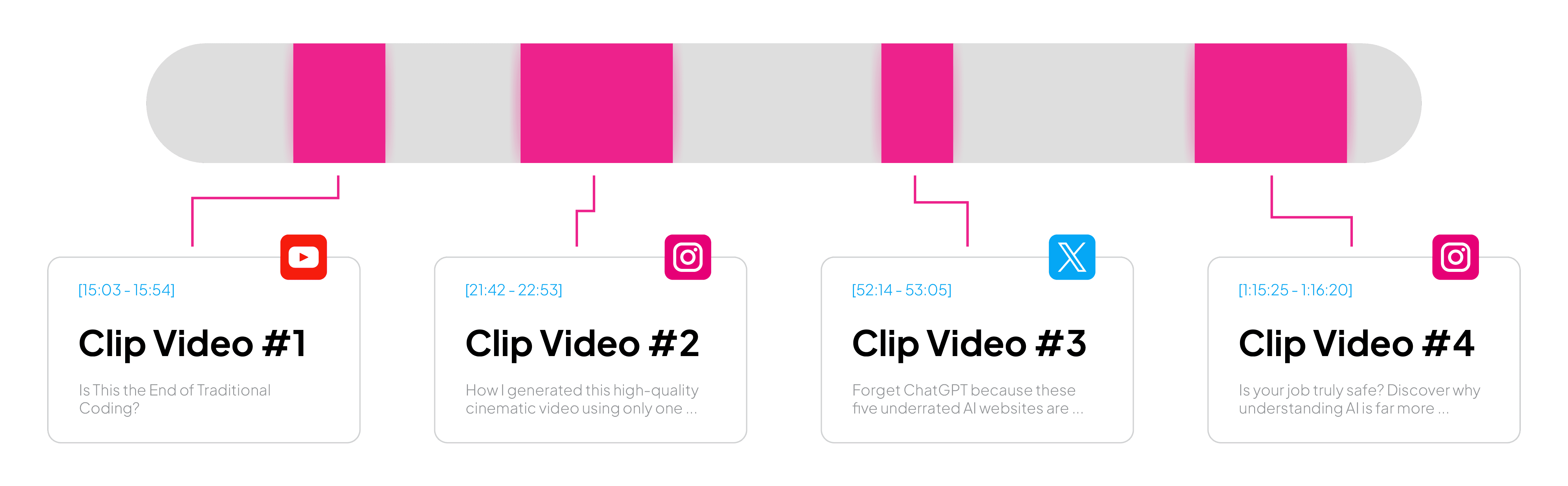We mine your existing video library to create months of new content without you recording anything new.
